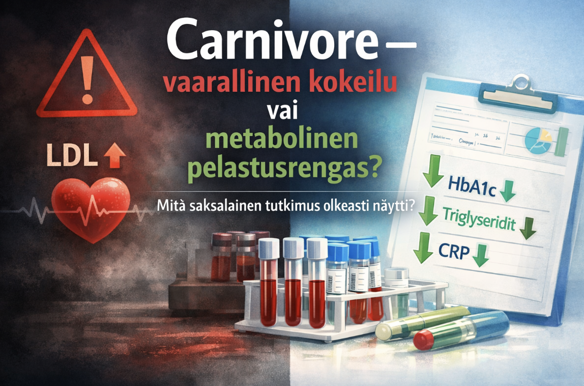 Vuonna 2025 julkaistu saksalaistutkimus laittaa pohtimaan. Tutkimuksessa ei tyydytty somekyselyihin, vaan mitattiin 24 carnivoren noudattajalta laboratoriokokein, mitä kropassa oikeasti tapahtui.